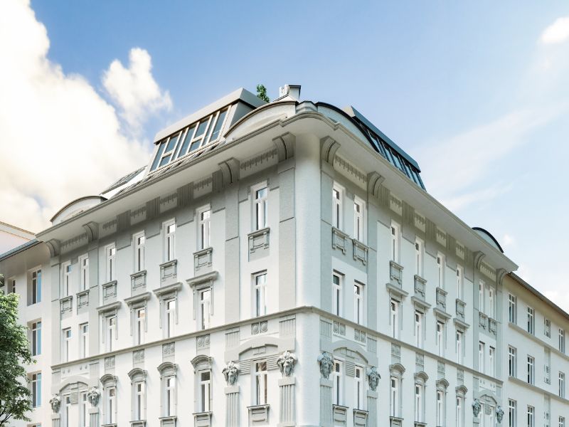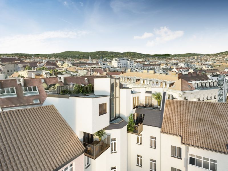 Im Rahmen der Bauarbeiten wird die gegliederte Fassade mit viel Liebe revitalisiert, um den historischen Glanz vergangener Tage wieder hell erstrahlen zu lassen. Durch den hochwertigen Ausbau des obersten Stockwerkes werden dringend benötigte 415 m² Wohnfläche in diesem dicht besiedelten Gebiet Wiens errichtet. Ein besonderes Highlight stellen ebenfalls die neu geschaffenen Gartenwohnungen sowie die großflächigen Balkone und Terrassen in den Innenhof dar. Durch eine geschickte architektonische Gestaltung können die zahlreichen Winkel des Eckhauses ideal genutzt werden, um den Bewohnern ein Maximum an Komfort und Privatsphäre zu bieten.