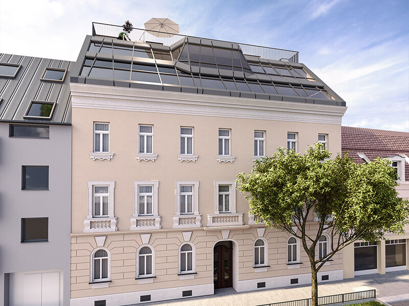 In den grünen Ausläufern des Wienerwalds und in unmittelbare Nähe zum erfrischenden Hütteldorfer Bad liegt in der Linzerstraße ein Gründerzeithaus, welches vom Architekten Martin Haas renoviert und mit einem Dachgeschossausbau erweitert wurde.